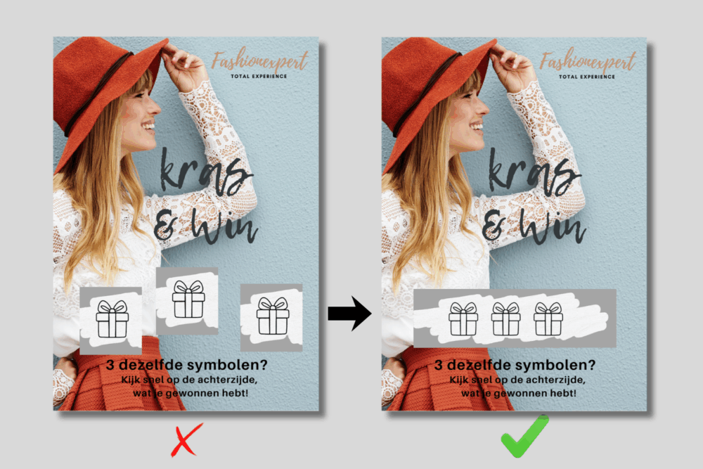 Wil je op je kraskaart bijvoorbeeld 3 iconen tonen om een win- of spelmoment te creëren?